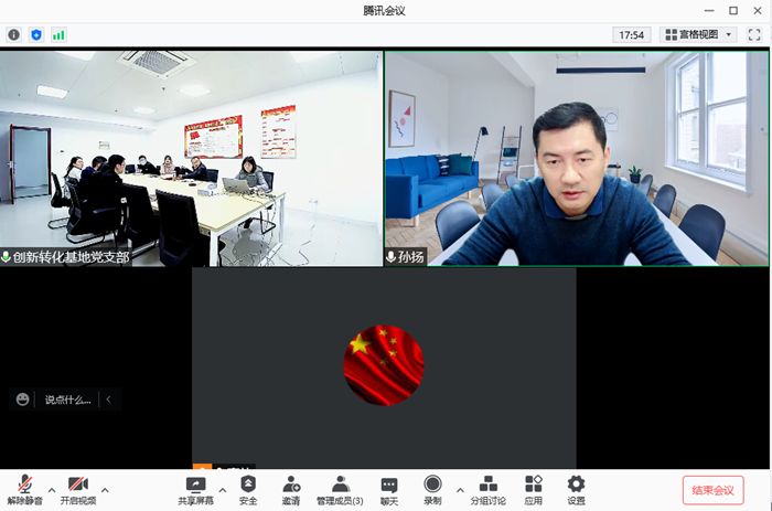 11月30日上午,创新转化基地党支部在大气所淮南园区综合楼党建活动室通过现场会议(淮南)和视频会议(北京)相结合的形式开展主题党日学习活动。会议由支部书记孙扬主持。年轻干部理论学习小组全体成员参加了此次学习活动。