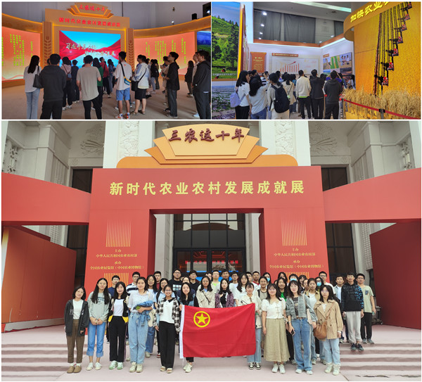 团员们首先参观了“三农这十年——新时代农业农村发展成就展”,该展由农业农村部举办,以图片、实物、展品等形式,系统展示了十年来我国农业农村改革发展走过的非凡历程和取得的辉煌成就,包括粮食安全、农业高质量发展、脱贫攻坚、乡村振兴和农村改革五大部分。团员们在讲解员的介绍下进行了参观学习,认识到了农业农村所取得的历史性成就和所发生的历史性变革,对三农问题和新时代三农工作有了更深入的了解,也深刻感受到了习近平新时代中国特色社会主义思想的真理力量和实践伟力。