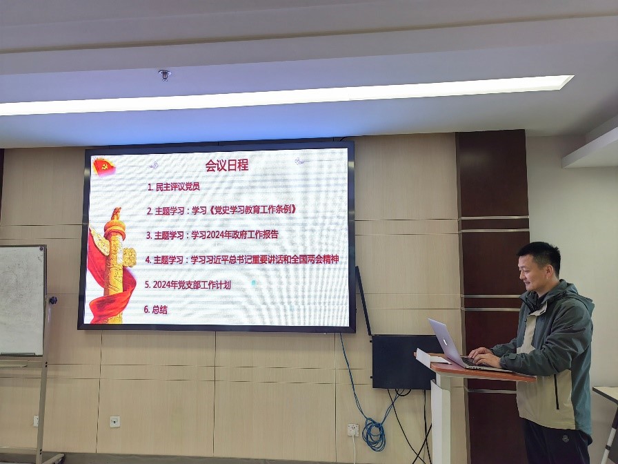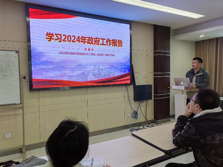 贾炳浩带领与会党员集体学习了《党史学习教育工作条例》(以下简称《条例》)和《2024年政府工作报告》,并对习近平总书记重要讲话和全国两会精神进行了解读。与会党员深刻认识到党史学习教育工作的重要意义,从党的历史中汲取智慧和力量,指导自己今后的工作。通过学习《2024年政府工作报告》,大家结合科研工作者的实际情况认真分析了报告中提出的重点任务和工作部署,领会报告对于推动经济社会发展的重要指导意义。随后,围绕习近平总书记提出的“新质生产力”这一重大概念,重点学习了其内涵、意义和发展途径。所有党员同志通过此次学习,深刻领会到作为科技工作者应该结合主责主业,为发展新质生产力提供有力的科技支撑,为抢占科技制高点贡献力量。