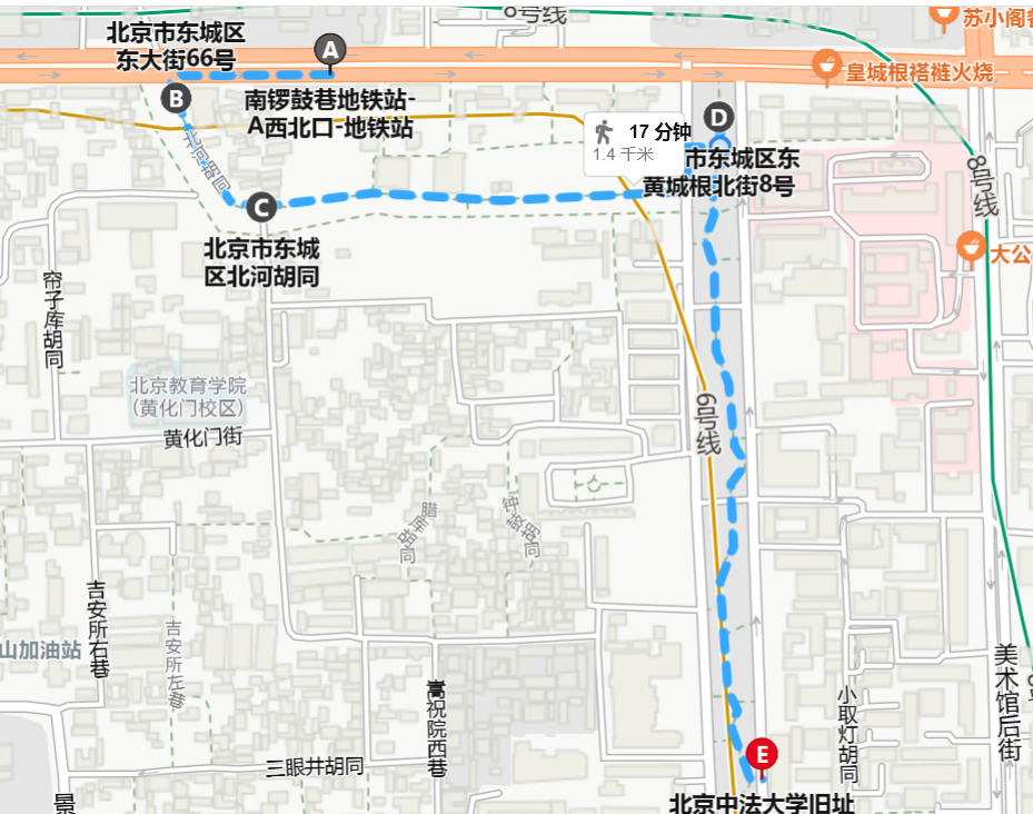 活动当天,党员们以绿色出行的方式在地铁南锣鼓巷站集合,沿平安大街、澄清中闸和玉河庵,途经修复的玉河故道遗址到达澄清下闸,最后经皇城根遗址公园南行抵达中法大学旧址。
