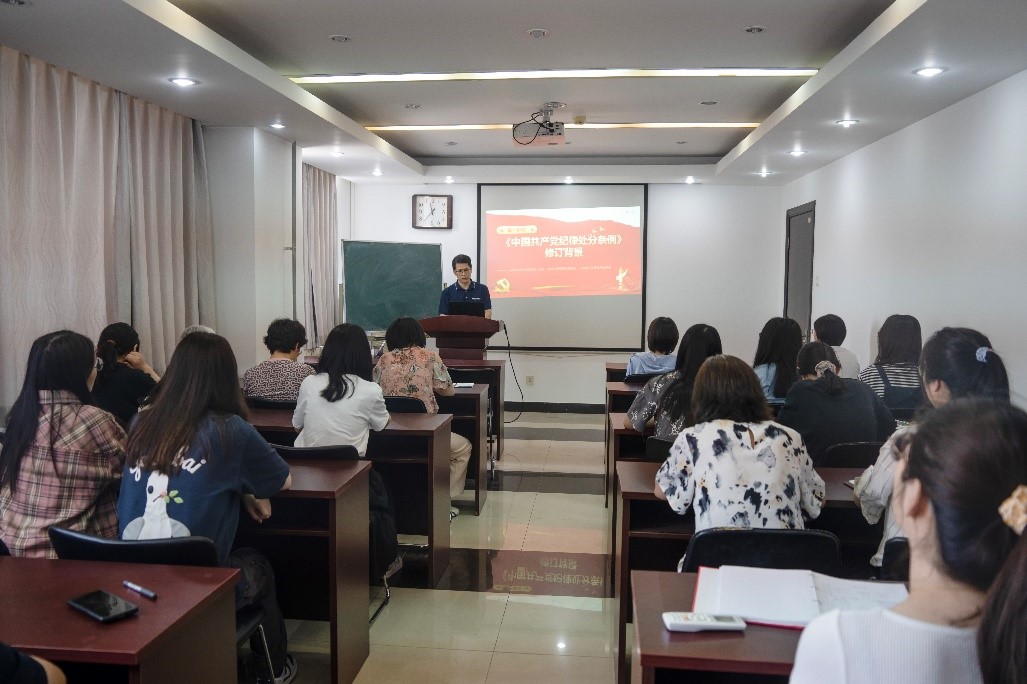 蒋如斌为与会党员讲了党课,带领党员们学习了修订的《中国共产党纪律处分条例》(以下简称《条例》),介绍了《条例》的修订背景和重要意义,并对《条例》修订的亮点进行了一一解读。蒋如斌强调《条例》的修订是为了进一步严明政治纪律和政治规矩,带动各项纪律全面从严,发挥纪律建设标本兼治作用,敦促全体党员要把贯彻新修订的《条例》作为重要政治任务,会后要加强学习、深刻领会、严格执行。