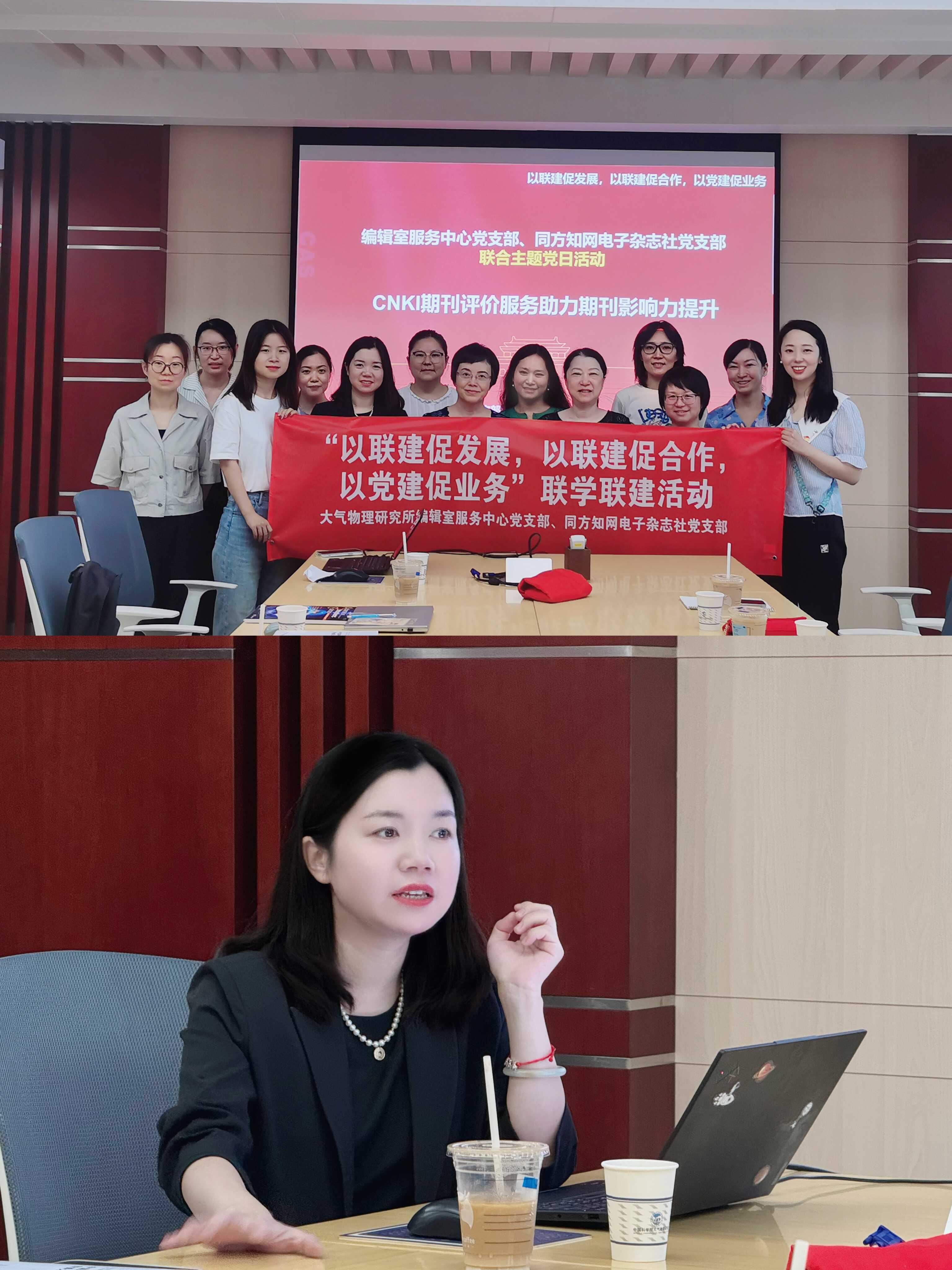 为进一步将习近平新时代中国特色社会主义思想转化为坚定理想信念和指导实践工作的强大力量,贯彻落实《关于深化改革培育世界一流科技期刊的意见》《关于推动学术期刊繁荣发展的意见》等文件精神,2024年7月19日,中国科学院大气物理研究所编辑室服务中心党支部与同方知网电子杂志社党支部携手,开展了以“学习贯彻习近平新时代中国特色社会主义思想,共促高质量科技期刊建设——CNKI期刊评价服务助力期刊影响力提升”为主题的联学联建活动,两个支部主要负责同志和党员一起参加了此次主题活动。活动由编辑室服务中心党支部书记金玲主持。