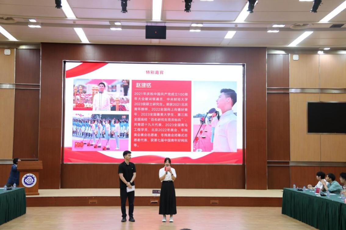 联学活动邀请到了一位特别嘉宾——2021年建党百年大会上在天安门前献词领诵员赵建铭同学。他向在座青年分享了参加建党百年庆祝大会、北京冬奥志愿服务等国家大事的幕后故事,结合自身经历畅谈学习党的二十届三中全会心得体会,以“坚定信仰、博学笃行、砥砺奋斗”与在场青年共勉。
