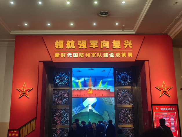 团员青年们参观了大型主题展览“领航强军向复兴—新时代国防和军队建设成就展”。展览通过文物实物、照片、武器装备模型及互动项目等形式,展示了新时代国防和军队建设的壮阔历程与伟大成就,展现了人民军队忠诚维护核心、矢志奋斗强军的昂扬风貌。