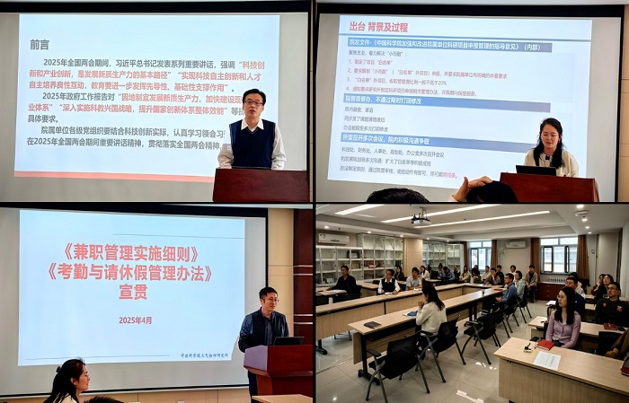 2025年4月16日,NZC党支部开展“严明岗位工作纪律”主题党日活动,深入学习了“三项制度”的重要意义、内容和要求。本次活动邀请了人事处处长李垒和科技处处长姚利参加并进行宣讲。活动由所党委委员、NZC党支部书记孙建奇主持。