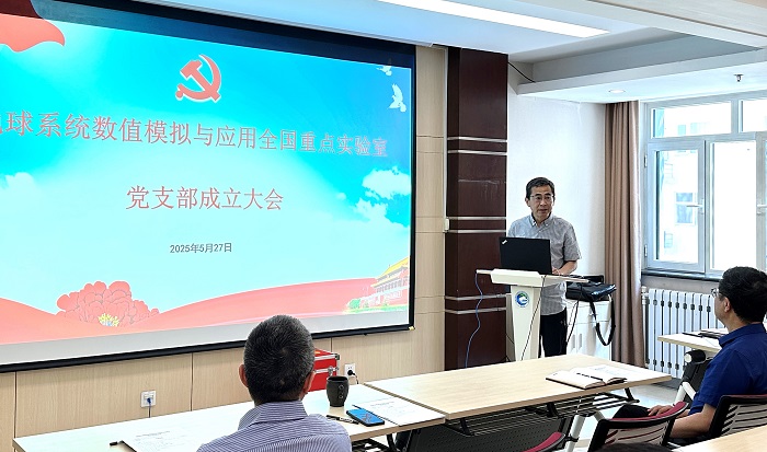 2025年5月27日,地球系统数值模拟与应用全国重点实验室党支部成立大会在大气所3号楼418会议室召开。所党委书记陆日宇研究员、实验室主任袁星研究员出席大会并发言。大会由实验室副主任郑飞同志主持。