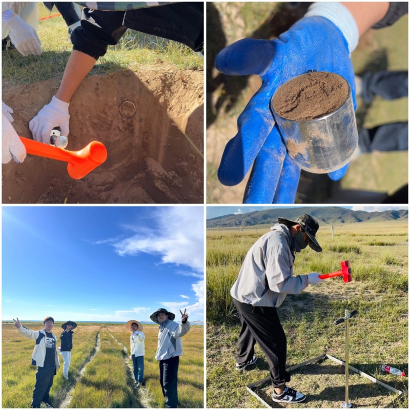 青海湖畔采青:2024年8月,青海省海北州海晏县青海湖。在青海湖畔的高寒草甸,采集草原地上生物量、地下生物量和土壤样品,测定植物叶片、根系和土壤中的碳、氮含量和同位素丰度。(李萍提供)