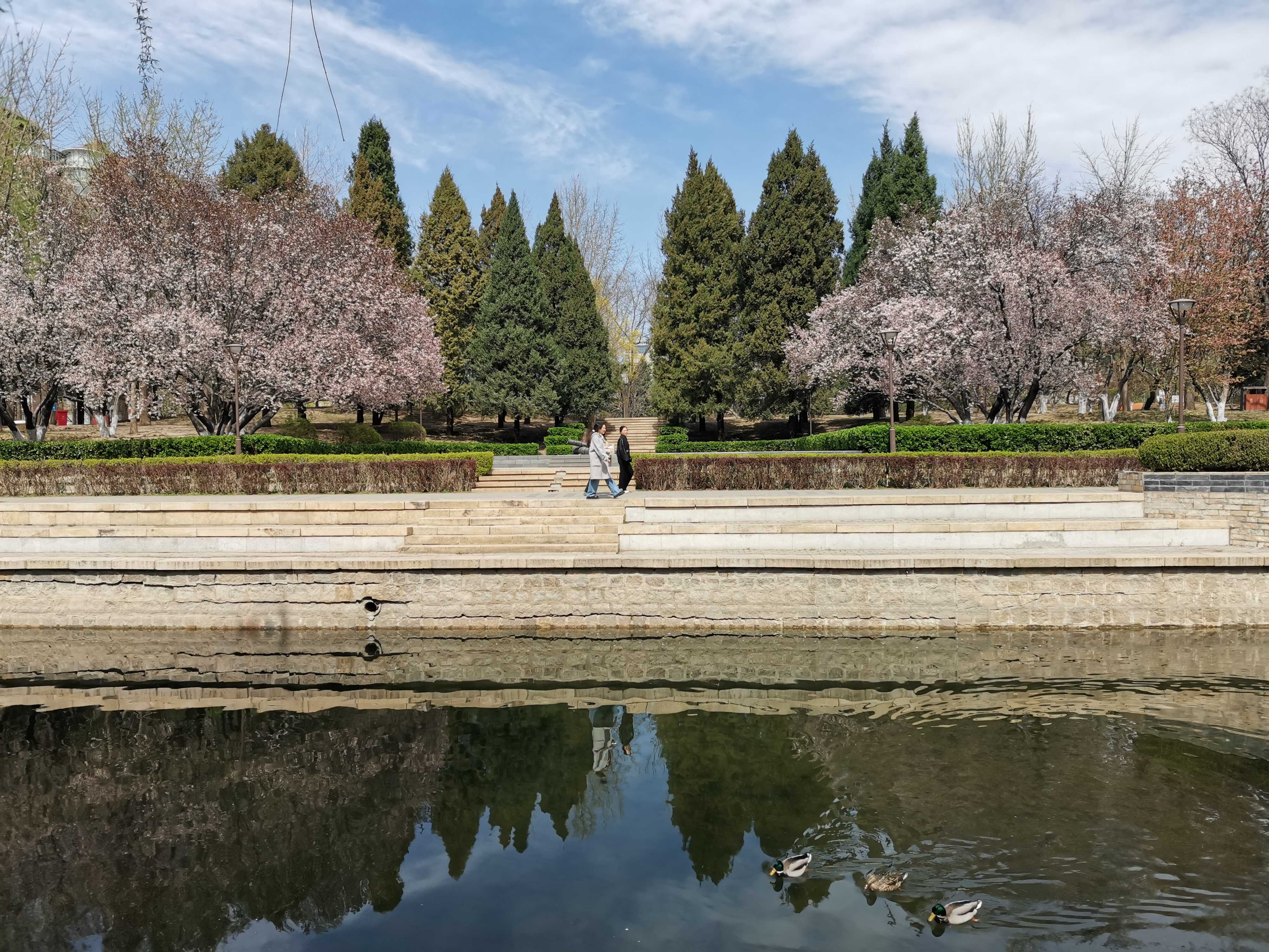 工作之余,漫步在小月河,微风拂面,享受春日的暖阳。(王军提供)