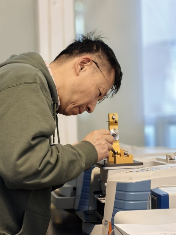 徐星凯老师正通过傅里叶变换红外光谱仪测量土壤样品中的有机质特征。(贾龙提供)