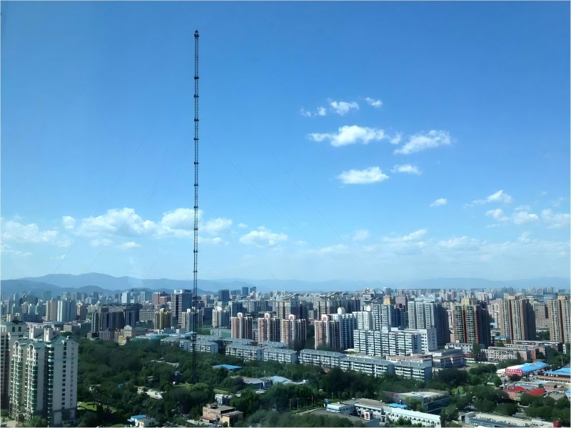 云端守望--以蓝天映衬下的325米观测铁塔背景,强调大气所人“观测云端、守护民生”的使命。(王昭提供)