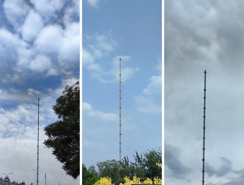 在大气所铁塔上开展了二氧化碳观测实验,从不同角度对观测塔进行了拍摄。(韩鹏飞提供)