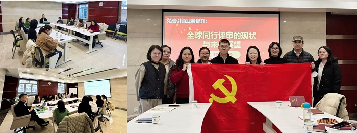 2025年11月26日下午,编辑室服务中心党支部围绕“党建引领业务提升——全球同行评审的现状与未来展望”主题,组织开展了本月主题党日活动。活动通过集中学习与专题报告相结合的方式,推动党建与业务工作深度融合,激发党员同志在学术出版领域的使命担当。活动由党支部书记金玲主持。