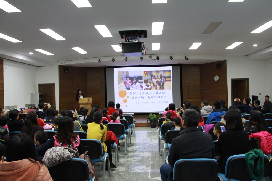 春天姐姐从“如何说话”这一根本谈起,详细为小朋友们阐述了说好普通话的重要性。春天姐姐在气息调整、如何做自我介绍以及重音方面作了强调,小朋友们也都积极踊跃地做现场演示。此外,春天姐姐还教小朋友们练习口部操,让家长和孩子受益良多。讲故事互动环节更是把全场的气氛推向了高潮。小朋友们争先恐后地举起手来要上台讲故事,在这个环节,家长朋友们看着自己的孩子在众人面前毫不扭捏、落落大方地表演,自豪的心情油然而生,纷纷照相留念。最后春天姐姐给大家讲了绘本童话《我的幸运一天》,使得整场活动的气氛达到了顶点。