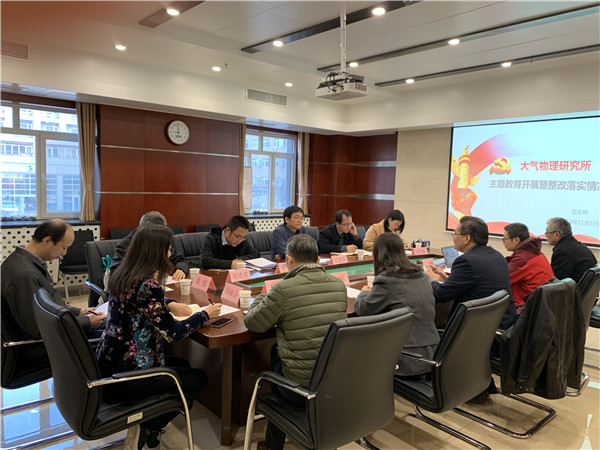 王生林汇报了大气所主题教育开展及整改落实情况,包括主题教育整体情况、专项整治工作情况、突出问题整改情况三大方面,以及研究所建立整改落实的定期督办和跟踪机制。