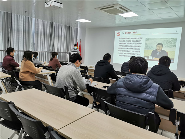 2020年12月28日上午,创新转化基地(原淮南研究院)党支部在大气所淮南园区综合楼二楼会议室召开2020年度组织生活会暨学习会,会议由党支部书记孙扬主持。