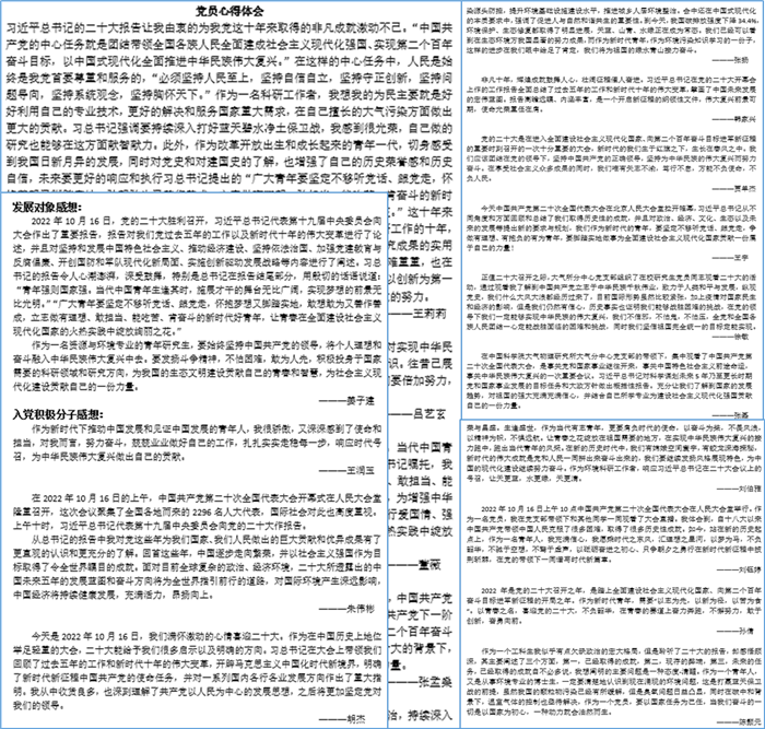 二十大明确了我党的中心任务“中国共产党的中心任务就是团结带领全国各族人民全面建成社会主义现代化强国、实现第二个百年奋斗目标,以中国式现代化全面推进中华民族伟大复兴。”强调了“必须坚持人民至上,坚持自信自立,坚持守正创新,坚持问题导向,坚持系统观念,坚持胸怀天下。”作为科研工作者,我们一致认为,为民主要就是好好利用自己的专业技术,更好的解决和服务国家重大需求,在自己擅长的大气污染防治方面做出更大的贡献,坚决贯彻习近平总书记关于“持续深入打好蓝天碧水净土保卫战”的要求,在迈上全面建设社会主义现代化国家新征程、向第二个百年奋斗目标进军的关键时刻,我们更要敢于斗争、善于斗争,坚定历史自信,增强历史主动,以创新为第一动力,努力干好自己科研的主责主业,在日益激烈的竞争中脱颖而出,为我国减污降碳协同增效做出自己最大的努力,为谱写新时代中国特色社会主义更加绚丽的华章贡献自己的一份力量。(大气分中心党支部供稿)