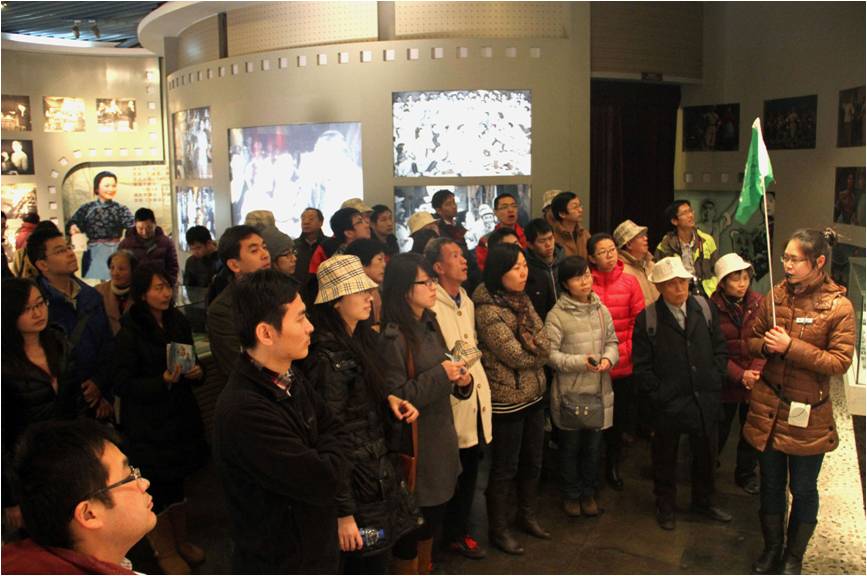 我们齐聚在沙家浜耸立起的巨型群雕广场上,以无比虔诚的心情瞻仰了屹立于广场中央的以“郭建光”、“阿庆嫂”等形象为主创的大型雕塑,它栩栩如生地展示了军民鱼水情深,共同抗敌的坚强意志,广场两边18根柱雕,象征新四军伤病员如泰山顶上棵棵参天的青松,挺拔而富有活力,确实给了我以巨大的感染力和震撼力。随后,与大家共同参观了经重建的“沙家浜革命历史纪念馆”。纪念馆以紧扣爱国主义教育和革命传统教育为两大主题,主要展示了沙家浜的革命历史、新四军在这里开展抗日游击战的战斗历程、后方医院伤病员养伤的情况、真实生动地反映了沙家浜的革命斗争史实;认真观看了以“建党及大革命时期”、“土地革命战争时期”、“抗日战争时期”、“解放战争时期”、“今日沙家浜”等为主题的五大部分内容的展览,在认真听讲解员的讲解下,了解了当时生活的艰辛,抗战道路的曲折坎坷,了解了在取得胜利的过程中孕育出现了优秀的事件和英雄,尤其是纪念馆里陈列的400多幅有关沙家浜地区革命斗争历史照片和60多件革命文物,以其丰富的内容和详实的史料。