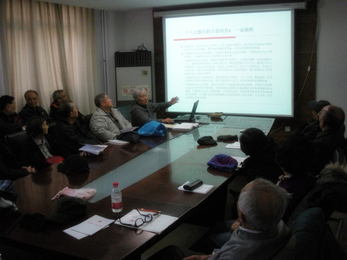 12月18日上午在所科研楼304会议室组织召开支部大会,内容有两个:一是学习十八大,二是主题生活会《交流经验 分享快乐 过幸福的晚年生活》,共有21名党员参会。