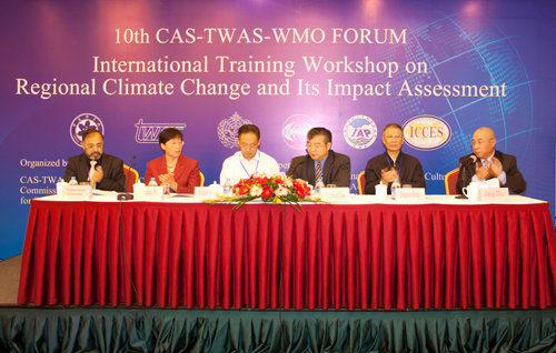 由中国科学院(CAS)、发展中国家科学院(TWAS)和世界气象组织(WMO)共同发起和主办的气候论坛(CTWF)第10届国际培训班“区域气候变化及其影响评估”于2011年9月26-29日在北京友谊宾馆召开。本次国际培训班联合了南方科技促进可持续发展委员会(COMSATS)、联合国教科文组织(UNESCO)等共同举办。