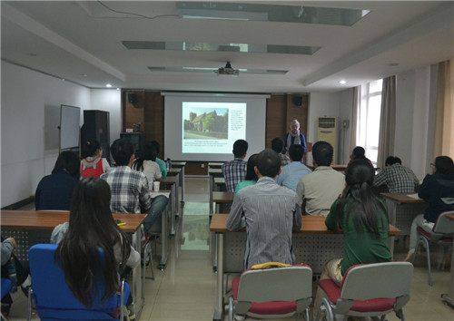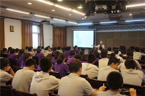 Jacqueline·Hoskins女士以英国历史为背景向同学们深入浅出地描述了英语的发展历史。她以自己的家乡小镇Pangbourne Village的语言发展为主线,详细介绍了古英语——盎格鲁撒克逊语——在拉丁语、德语、法语等的影响下逐渐发展,并随人口的迁移而传播,最终形成现代英语的过程;还从Pangbourne Village建筑发展的视角生动地描述了文艺复兴时期基督教僧侣、神职人员、学者在英语发展与传播中所起的作用。报告末尾,Jacqueline·Hoskins女士还简要提及了科学技术的发展对英语词汇、表达方式的影响,并以幽默的网络英语作为报告的结束语。