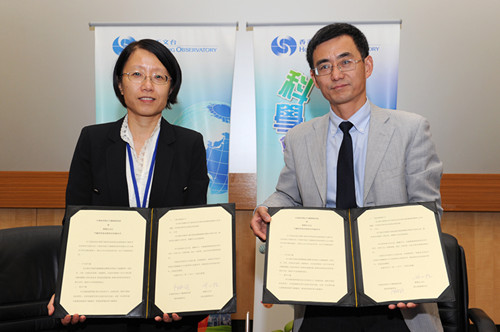 中国科学院大气物理研究所副所长陈洪滨研究员近日赴香港访问香港天文台并参加了香港气象学会成立25周年纪念活动及“东亚与西太平洋气象与气候研讨会”。11月4日陈洪滨副所长代表大气物理研究所与香港天文台签署了科研合作意向书,这是香港天文台首次与内地学术研究机构签订意向书。此次合作涵盖领域包括航空气象、台风、气候变化和极端天气的预测。双方期待通过加强科研合作,在研究工作上优势互补,产生协同效应,共同推动科研成果应用并造福社会。