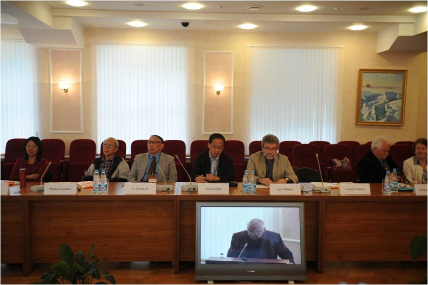 本次会议由俄罗斯科学院大气物理研究所主办,中俄双方共有四十余位专家学者参加了这次会议。研讨会上,俄科院大气所所长I. Mohov院士、中科院大气所前所长王会军院士和俄科院大气所前所长G. Golitsyn院士先后致开幕词,并回顾了两所二十多年来的工作历程与友谊。随后,参加会议的科研人员做了涉及气候与气候变化、大气环境、预报与大气动力学等三大方面共26个大会报告。报告内容涉及极端天气气候事件的分析与模拟、欧亚地区遥相关对南亚降水的影响、赤道西太平洋MJO强度与东亚冬季风的关系、极地环境遥感和极地海冰对欧亚北部地区冬季的影响、积云对流参数化方案改进、东亚大气环流和气候的变异与归因、大气灰霾控制与气溶胶的影响等。双方科研人员就有关前沿和相互关注的学术问题进行了广泛的交流和互动。