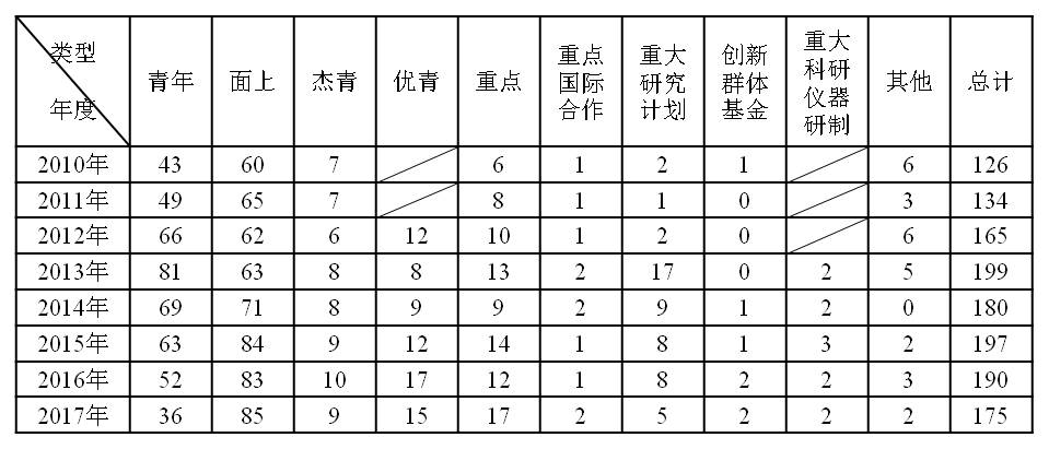 附表1.2010-2017年基金集中申报期间各类型项目申请情况