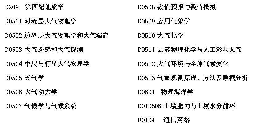 附4.优秀青年项目15项中,其中地理学学科2项(分别为应用气候学和冰冻圈地理学),地质学1项(具体为第四纪地质学),地球物理学和空间物理学1项(具体为空间环境和空间天气学),大气科学学科11项(其中气候学与气候系统7项,数值预报与数值模拟2项,大气化学1项,大气环境与全球气候变化1项)。