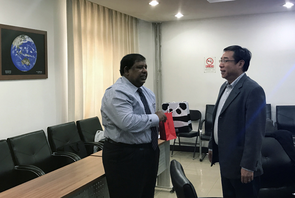 CAS-TWAS气候与环境卓越中心主任林朝晖研究员介绍了中心过去几年与斯里兰卡开展的广泛科技合作、人员交流和培训等情况,尤其是针对斯里兰卡最大流域(Mahaweli流域)开展的极端气象水文灾害方面的合作研究。雷电专家郄秀书研究员介绍了大气所雷电研究成果和雷电减灾技术。Senewiratne先生对大气所针对斯里兰卡极端天气气候灾害的统计分析和预测结果表示高度赞赏,同时高度评价了大气所发展的闪电监测、预警系统和防护技术装备。他最后表示斯里兰卡急需这些科研成果,他还表示将及时转达给即将参加5月份“一带一路”高峰论坛的斯里兰卡总理。(科技处供稿)