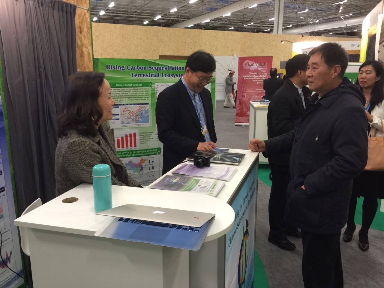 此次参展紧密围绕院党组对战略性先导科技专项“目标清、可考核、用得上、有影响”的十二字方针,多方策划、积极争取、认真准备、通力协作,充分利用巴黎气候大会的契机加大对碳专项的宣传。展会是通过中国科学技术协会申请,争取到专项小组以NGO身份首次在巴黎气候大会上亮相。碳专项专家充分发挥展台的推介功能以及多年积累的国内外广泛合作网络,积极与各国代表和国际组织高层交流,向世界展示中国科学家在开发碳卫星、调研和提升森林固碳能力、理解中国气候变化等方面的工作和进展,并就中外媒体关注的对巴黎大会的愿景、中国节能减排措施等问题接受了多家媒体的采访。