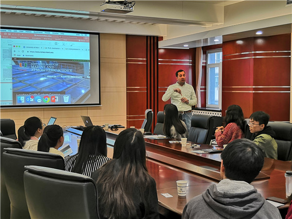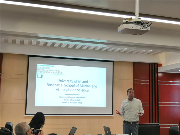 10月12日上午在大气所新楼第一会议室,来自迈阿密大学罗森斯蒂尔海洋与大气科学学院主管交流与公共关系的执行主任Joshua Christian Coco来所与研究生部就研究生联合培养工作进行交流。 首先,研究生部主任孙鹏宇做了题为《Postgraduate Training Programs of IAP》的英文报告,报告围绕着研究所简介、教育概况和培养特色三个方面展开,对大气所的历史沿革、学科发展、导师队伍以及国际影响力等优势做了全面介绍,并重点介绍了我所坚持科教融合,坚持以人为本,坚持文化育人的培养特色。 接着,Joshua做了题为《University of Miami Rosenstiel School of Marine and Atmospheric Science》的英文报告。他全面介绍了罗森斯蒂尔学院的教育现状、学术部门、硬件设施、研究方向、社区推广等:罗森斯蒂尔海洋与大气科学学院是迈阿密大学海洋学和大气科学研究的学术和研究机构。它是美国大陆唯一的研究亚热带海洋与大气的基础理论与应用的学术机构。罗森斯蒂尔学院的研究领域包括海洋生物、气候变化、海气相互作用、沿海生态学和海事法。学院经营着一艘海洋研究实验室船,并在内陆设有研究基地。此外,还研究关于气象卫星数据的使用,并拥有自己的卫星下行线设备。 最后,双方就研究生培养与交流工作进行了交流与讨论。Joshua主任详细回答了在场研究生关于迈阿密大学申请条件、导师联系方式、以及校园生活等各方各面的问题,并热情洋溢地欢迎同学们来迈阿密大学攻读学位或访问交流。 这次交流会有利于大气所与迈阿密大学罗森斯蒂尔学院互相认识,建立友谊,并为今后的进一步合作与交流打下了基础。(研究生部供稿) |