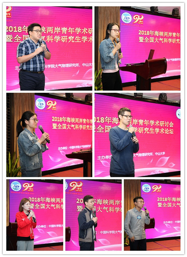 与会的青年学子也发表了自己的感受。台湾大学钟吉俊,中山大学张阿思,南京信息工程大学徐鑫萍,台湾气象局许乃宁,成都信息工程大学王婷,南京大学谭鑫,大气所缪家鹏纷纷表示在此次研讨会中收获满满,并对与会各位长者同辈、点评专家和会务组人员表示了感谢。