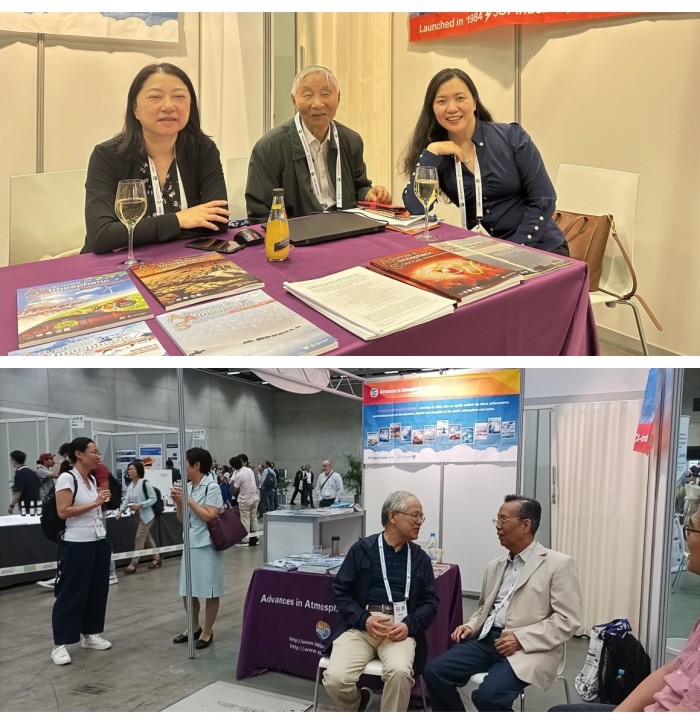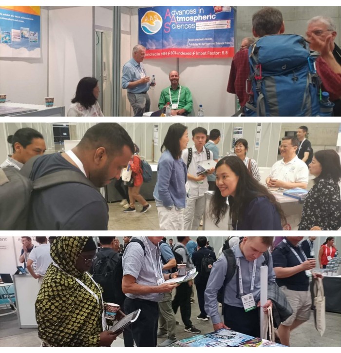 AAS应邀在IAMAS执委会第二次会议上作工作报告。在穆穆主编的建议下,AAS编辑部向IAMAS执委会提出续约周期由四年一次改为八年一次。在AAS工作报告之后,IAMAS国家代表对AAS工作报告和续约提议通过表决一致同意续约,且改为8年一续约,体现了IAMAS执委会对AAS近年来进步的高度肯定,AAS作为IAMAS合作期刊的地位更加稳固,会后有许多IAMAS科学家前来展台咨询投稿和合作事宜。