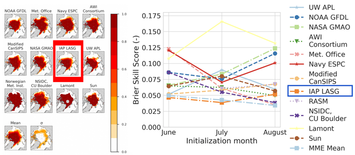 图3. 大气所S2S系统的海冰预测在2019“国际海冰预测网络“北极海冰分布预测Brier Score(BS)评分中排名第一
