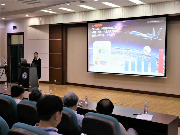 AAS责编、大气所编辑室副主任周玲在CNC-IAMAS会议上汇报了AAS的现状以及与国际IAMAS和CNC-IAMAS的渊源与合作,并提出了未来工作设想,希望借助CNC-IAMAS平台,邀约和组织更多优质稿件和专刊。AAS副主编吕建华教授介绍了AAS的出版范围,并调研了AGU、EGU和AMS等国际组织旗下期刊的办刊宗旨,提出了新的办刊思路,征求委员们的意见。CNC-IAMAS的主席团和委员们肯定了AAS的努力和成效。吴国雄院士回忆了AAS成长历程,认为AAS的发展离不开国内科研水平的提高,要抓住和国际IAMAS合作的契机,进一步发挥期刊的国内外学术交流桥梁作用。吕达仁院士认为AAS的规模和影响力都在不断增强,专题、专刊起到的作用很明显,是很好的办刊思路。AAS共同主编、大气所所长曹军骥线上参加会议,赞同AAS应借鉴国外先进办刊经验,坚持质量第一的办刊原则。其他委员也纷纷介绍了他们担任编委的国际期刊的办刊经验,鼓励AAS进一步提升质量,冲击国际一流期刊。