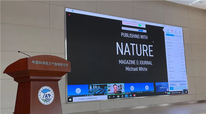 3日视频会上,Michael White作了“Publishing with Nature”的主旨报告,详细介绍了在《Nature》期刊上发表气候科学研究论文的流程,以及相关成果成功发表的案例。在报告后对参会人员具体关心的一些问题给予了详细解答。曹军骥介绍了大气所的基本情况及最新发表的高水平成果,相关实验室主任介绍了实验室最新科研进展及未来研究重点。