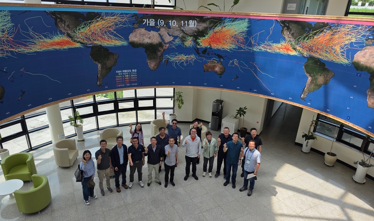 会议期间,参会人员参观了韩国气象厅NIMS云物理实验舱(K-CPEC)及韩国国家台风中心。在K-CPEC参观过程中,韩方科研人员详细介绍了其在云微物理过程模拟、气溶胶-云相互作用等方面的研究平台与技术优势;在韩国国家台风中心,中方代表团深入了解其在台风预测、强对流天气预警系统和多源观测数据融合等方面的技术体系。此次实地考察进一步增进了双方对彼此研究能力和现状的了解,为未来在云物理与台风预报等方向开展联合研究提供了有力支撑。