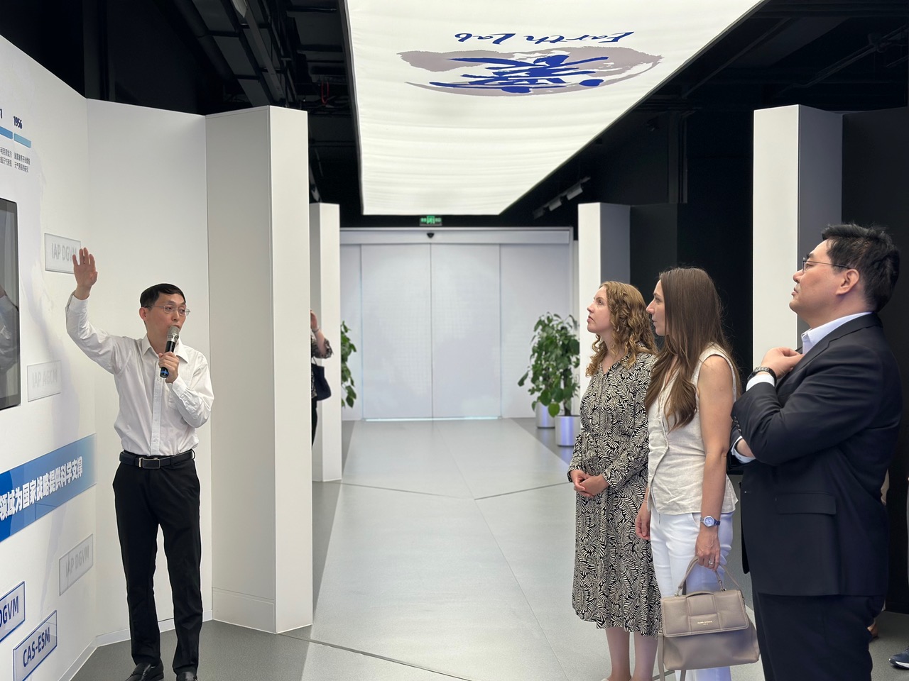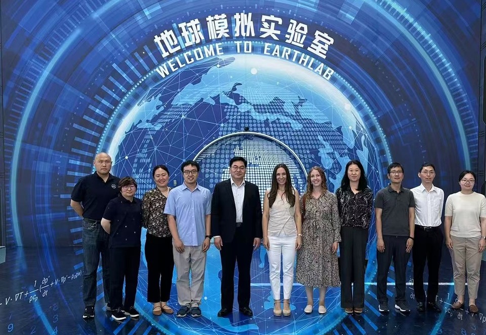 代表团首先参观了国家重大科技基础设施——“地球系统科学数值模拟设施(EarthLab)”。大气所张贺研究员全面介绍了EarthLab的总体架构、技术能力和科研支撑体系,并引导代表团参观了EarthLab展厅及超算机房。代表团成员高度评价了该设施在地球系统模拟、气候预测和气候变化等方面的科研能力和基础条件。