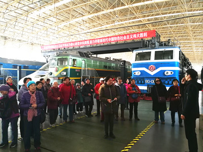 走进博物馆,在解说员的带领下,女同志们分别参观了中国不同历史时期不同的机车车辆,有最早的零号蒸汽机,有著名的“毛泽东号”和“朱德号”机车,有旧中国使用的多种外国制造的机车,有新中国成立后我国制造的部分首台蒸汽机车和自行设计制造的第一代内燃和电力机车不同种类的铁路硬坐车、卧车、餐车、行李 及货车等。这些 “机车”分别代表了不同时期的历史意义和革命纪念意义。如今,中国铁路发展迅猛,特别是近年的动车和高铁,让大家领略到“勇攀科技高峰,争创世界一流”的中国高铁精神,成为新时代中华民族精神的有力支撑。