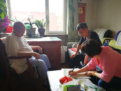 走进老党员梁山家中,陈洪滨代表所党委送上了节日的祝福。因患有老年性耳聋,落座后,他把小黑板和笔递给陈洪滨用来交谈。他的家人指着书桌上的红旗和党旗告诉我们,6月初梁老就催促家人购买新的红旗和党旗,期盼着七一的到来。陈洪滨叮嘱老人注意保重身体,并祝老人家健康快乐。