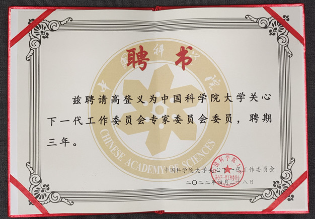高登义被聘中国科学院大学关心下一代工作委员会专家委员会委员