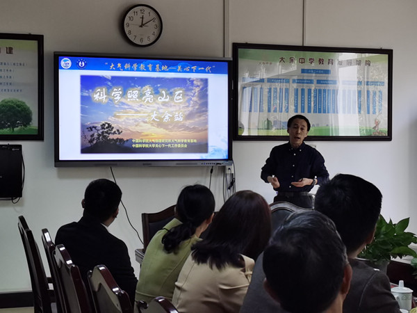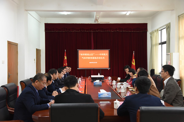 大余县县委常委、副县长陈亮副研究员、教科体局、关工委、科协、气象局、大余中学校长;崇义县教科体局党组书记、局长林发良、气象局、崇义中学校长等相关人员与“科学照亮山区”项目组进行了友好交流和讨论。陈亮同志对大气所致力于社会公益事业,深入县、乡村一线,助力中小学生科普教育发展表示感谢。他强调要进一步贯彻落实习近平总书记重要指示精神,充分发挥中科院导师资源,以更强的责任感和使命感助推赣南苏区的发展。