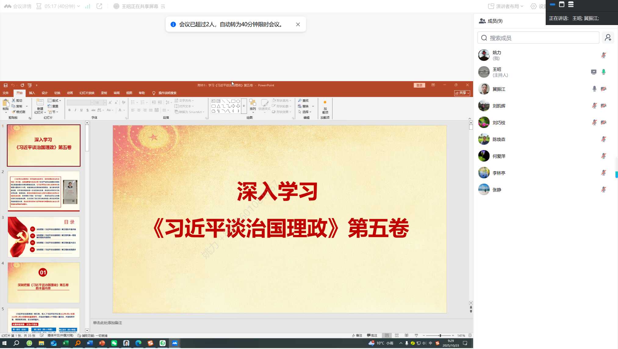 2025年10月23日上午,离退休党总支召开(线上)扩大会议,各支部委员参会,党总支副书记王昭主持会议。