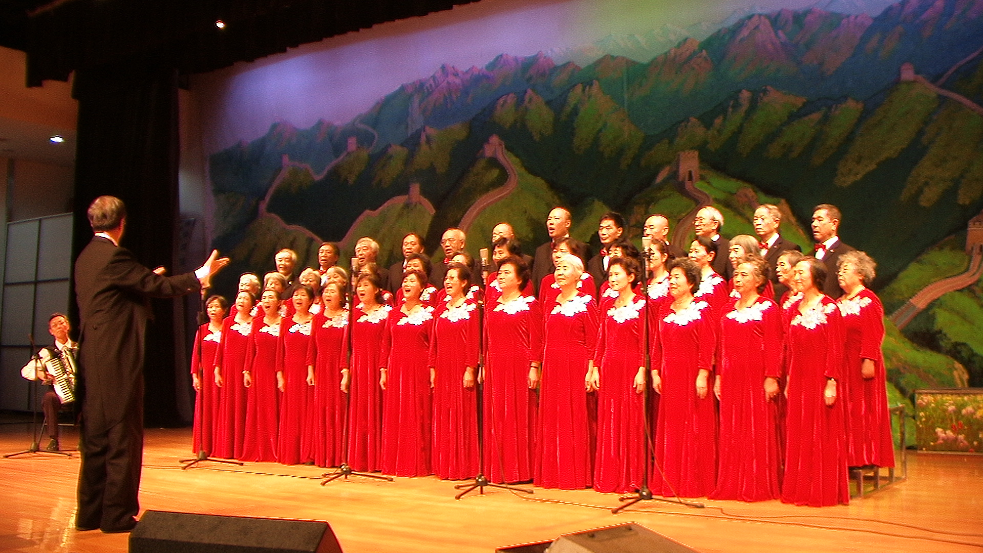 在庆祝会结束后的文艺汇演中,由40多位成员组成的大气所离退休老同志合唱团演唱了《生日快乐歌》,这是老同志专门为所庆80周年填词创作的。老同志满怀深情地唱到:“祝所生日快乐,庆祝八十华诞多快乐,成果累累笑开怀,掌声响如春雷,好似迎风傲雪俏红梅。日新月异捧奖杯,群星欢歌声飞,祝愿创新腾飞永相随。”老同志对大气所的感情,对大气所的祝福,感动了全场,大家报以热烈的掌声。舞蹈《山路十八弯》由10位年近古稀的老同志表演,他们舞步轻盈,让人感觉是如此的年轻。