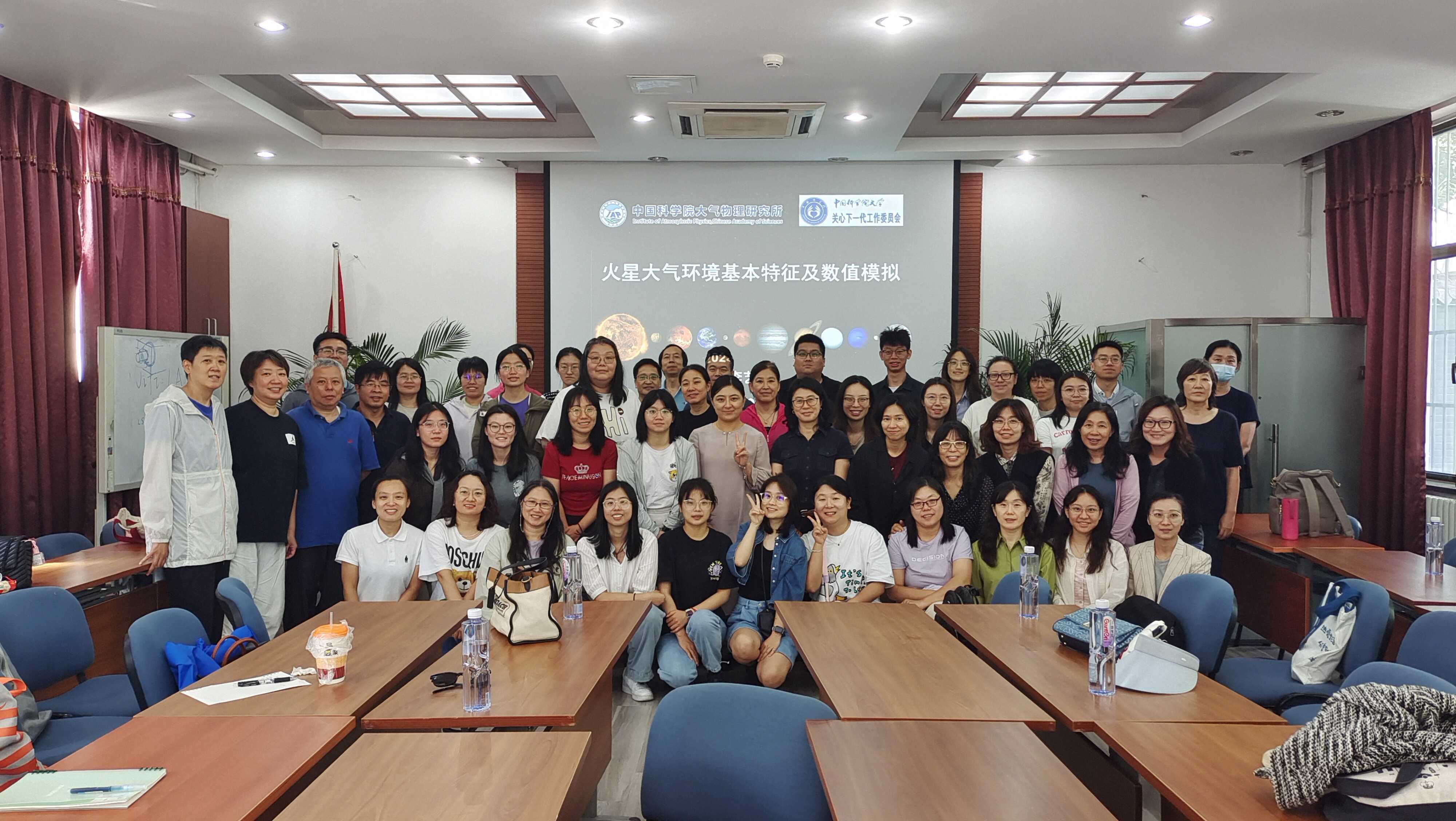首先,由中国科学院大气物理研究所李艺苑副研究员主讲“火星大气环境基本特征及数值模拟”。李老师主要从事大气模式动力框架基础问题的研究,近年来,围绕火星大气数值模式的研发开展工作。她为今天的培训提前翻阅了大量的中学地理书籍和学习。她从火星基础信息、火星大气环境基本特征、 火星大气数值模拟、总结和展望四个话题出发,带领师生们穿越火星,了解中国火星探测、地球与火星、火星地形、火星运行轨道和四季、火星大气温度、垂直分布、火星大气之谜:气候变化、全球沙尘暴等,她用生动的语言和精美的图片向大家讲述新一代火星大气模式GoMars历程以及我国一代又一代气象工作者的爱国情怀、科技事业发展和科学家们的艰辛工作。课程内容充实、节奏紧张,大家全神贯注,或低头沉思,或紧盯屏幕。在互动环节中为大家提供了提问与交流的机会,大家踊跃发言、积极提问,对“火星大气环境基本特征及数值模拟”研究领域充满了兴趣,几位老师表示愿意来大气所做科学研究。