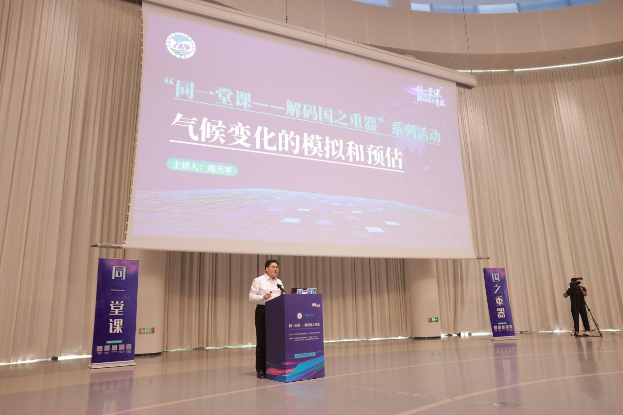 9月26日,地球系统数值模拟装置(以下简称“寰”)作为怀柔科学城五大“国之重器”之一走进“同一堂课——解码国之重器”系列公开课第二场。此次活动由中国科学院科技创新发展中心、北京怀柔科学城管理委员会联合主办,中国科学院大气物理研究所支持,特别邀请中国科学院大气物理研究所副所长周天军研究员,以《气候变化的模拟和预估》为题,围绕“寰”的使命与能力展开讲解,来自怀柔红螺寺中学和庙城学校的400余名中学生现场聆听“寰”的“地球叙事”。
