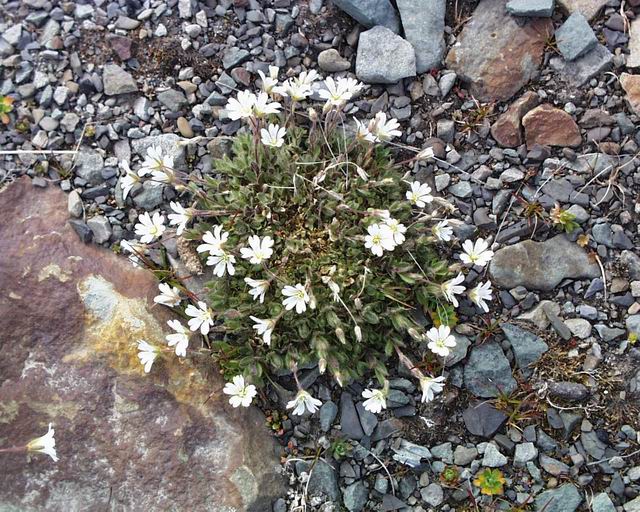 今天,在朗伊尔城,这儿的地理纬度已达北纬78度13分,但大家看到了星罗棋布的虎儿草,紫色的花朵,玫瑰色的花丛,镶嵌在绿色或红色草垫中;碧绿的青苔群,像无数翠绿的小山丘组成的丘陵地;洁白的雪绒花在寒风中怒放,在疾风中翩翩起舞,显示了无穷的生命力。