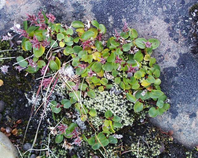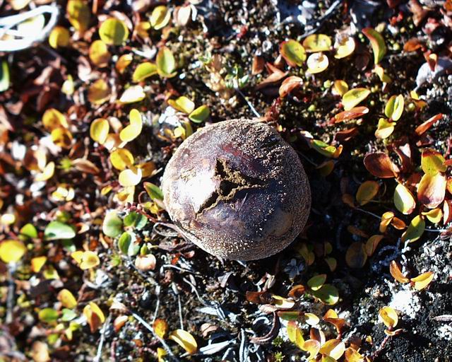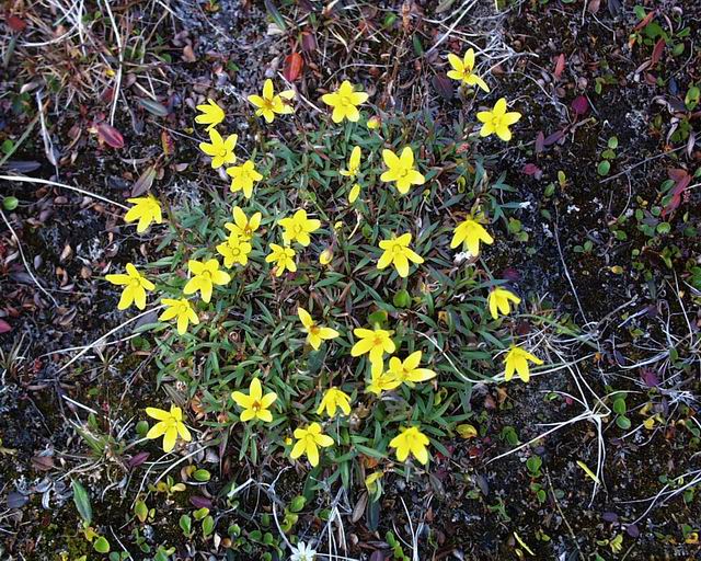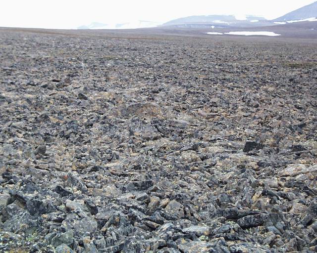 欲速不达 知道队友们下山,我心中踏实多了。我想利用这点时间差赶往山麓处多拍一点北极植物的特写镜头,我选择一条新的下山路线,加快步伐向山下走去。俗话说"欲速不达",此时正应在我身上。当我于下午8时许赶到我意想中的山麓处时,一条深切的山沟阻止了我下山的步伐,我惊讶了:原来远看可通的路却因地形起伏遮住视线而产生误判。我四下观望后重新判断,只有沿着山坡向上向北攀登100多米后才能回到我们上山时的路上。我刚才因加快步伐下山已经累了,这时又要向上攀登100多米,只有再加把劲了。这一上下折腾,左腿膝关节又隐隐作痛。没有办法啊!我坚持着,用了20多分钟就完成了"路线的校正"。