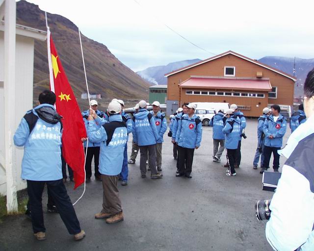 科学探险考察站落成典礼 夜里11时10分,即北京时间5时10分,与北京天安门升旗时间同步,我们在北极朗伊尔宾的南郊举行中国伊力特*沐林北极科学探险考察站落成典礼。考察队副队长刘嘉麒研究员在热烈地欢呼声中宣布:中国伊力特*沐林北极科学探险考察站落成典礼现在开始。在庄严的国歌声中,由考察队副队长陶宝祥高工与湖南沐林集团副总经理颜卫彬先生缓缓升起了祖国的五星红旗,队员们凝望冉冉升起的五星红旗引吭高歌。升旗毕,我和新疆伊力特集团副总经理周荣祖先生为中国北极伊力特*沐林科学探险考察站揭幕。在队员们的欢呼声中,我代表考察队讲话:中国伊力特*沐林北极科学探险考察驹谥信擦焦嗣竦闹С窒碌耍哟耍泄嗽诒奔辛说谝桓隹蒲Э疾煅芯康幕亍V泄亮μ沐林北极科学探险考察队将在"北极斯瓦尔巴德地区与青藏高原生态环境系统对比研究"方面做出应有的贡献,也将为我国政府尽快在斯瓦尔巴德地区建立长期的北极科学站起到促进作用。我们相信,中国的科学家遵循斯瓦尔巴德条约而在斯瓦尔巴德地区从事的一切活动必将得到我国政府和人民的支持!衷心感谢所有支持中国伊力特*沐林北极科学探险考察活动的朋友们!