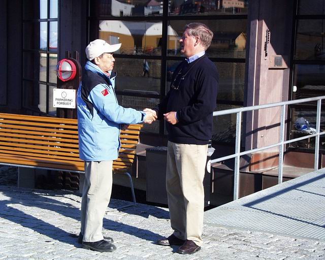 会见挪威极地大使 老朋友Y.叶新电话告诉我,我们的朋友、挪威极地大使、前挪威驻中国大使霍尔维克先生率代表团来北极朗伊尔城访问1天,他要见我,并约定今日中午在Y.叶新家中共进午餐。